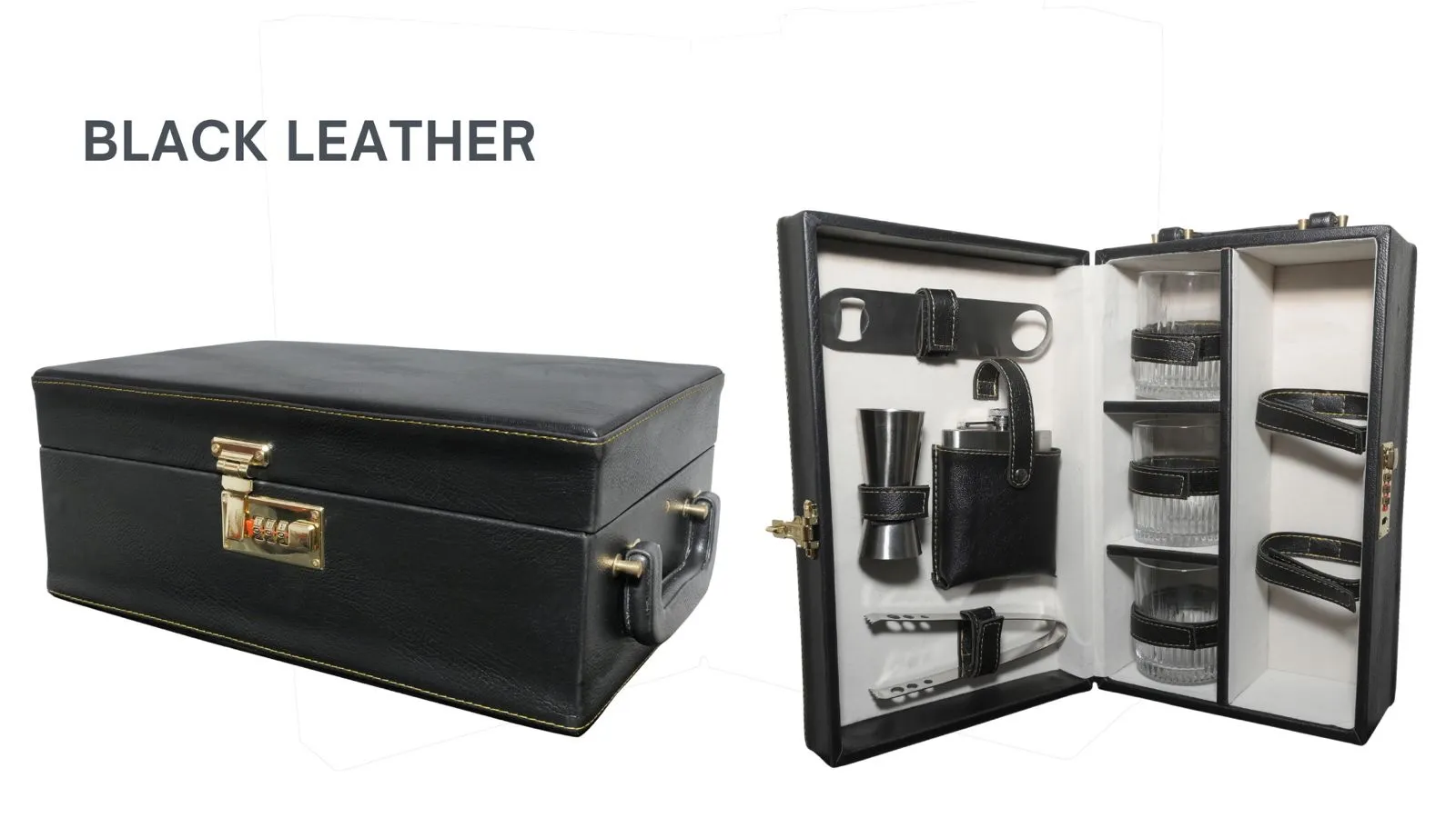 Leather Bar set 6 glasses, Black