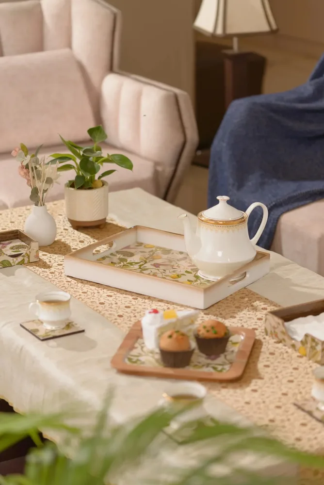 Material: The frame of the tray is made up of premium quality high-density fibre board (HDF) with a painted finish. The base of the tray is made up of laminated mdf with resin coating.