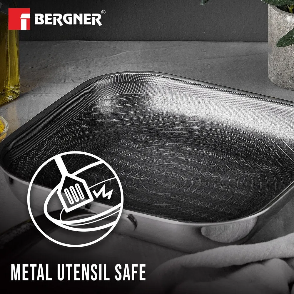 Bergner Hi-Tech TriPly Stainless Steel 24cm Grill Pan, Honeycomb Non-Stick Coating Inside, Non-Toxic, Healthy Cooking, Less Oil Use, Durable Handle with Excellent Grip - Induction and Gas Stove Ready
