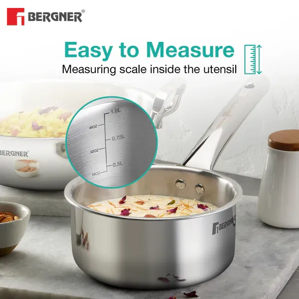 Triply Construction : Crafted with a durable triply stainless steel body, this set ensures long-lasting durability and superior heat retention for excellent cooking results
