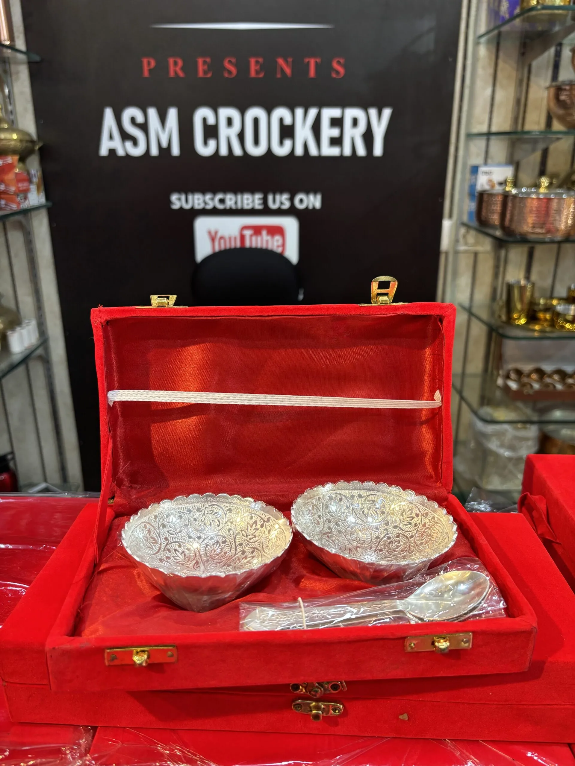 Return Gift 2 katori plus spoon item in Velvet box