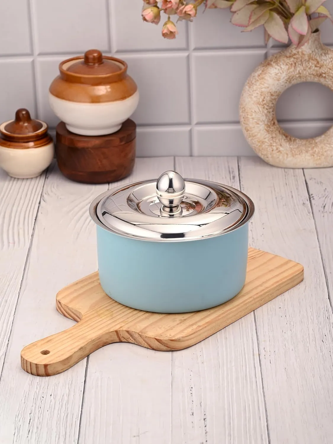 Stainless Steel Casserole- Matte finish inside to prevent scratches, White powder coating outside with beautiful color. Made with premium stainless steel, highly resistant to rust, stain, corrosion or crack.