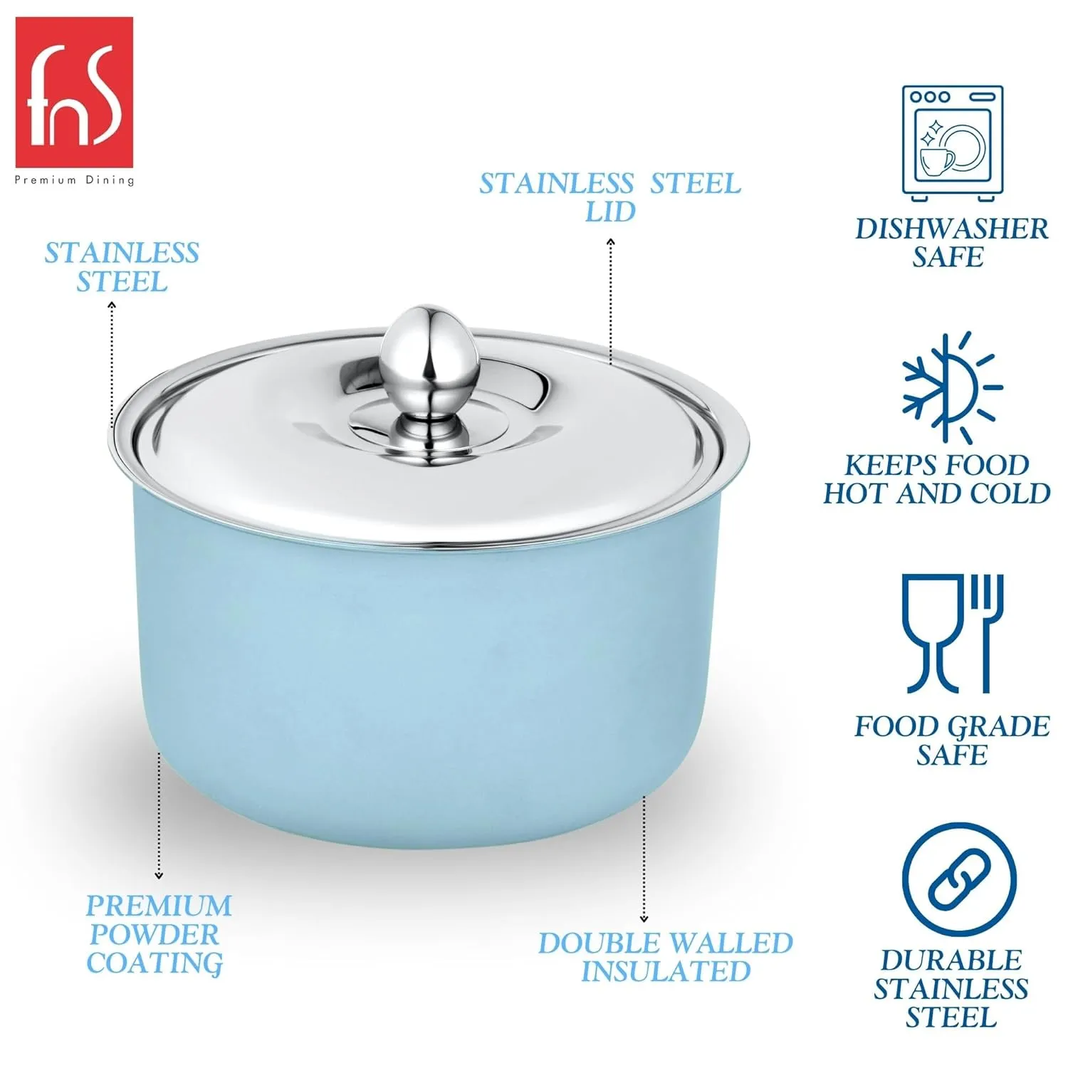FNS Alwin Sky Blue Stainless Steel Casserole | Premium Double Wall Insulated Hot Pot with Self-Locking Press Lid