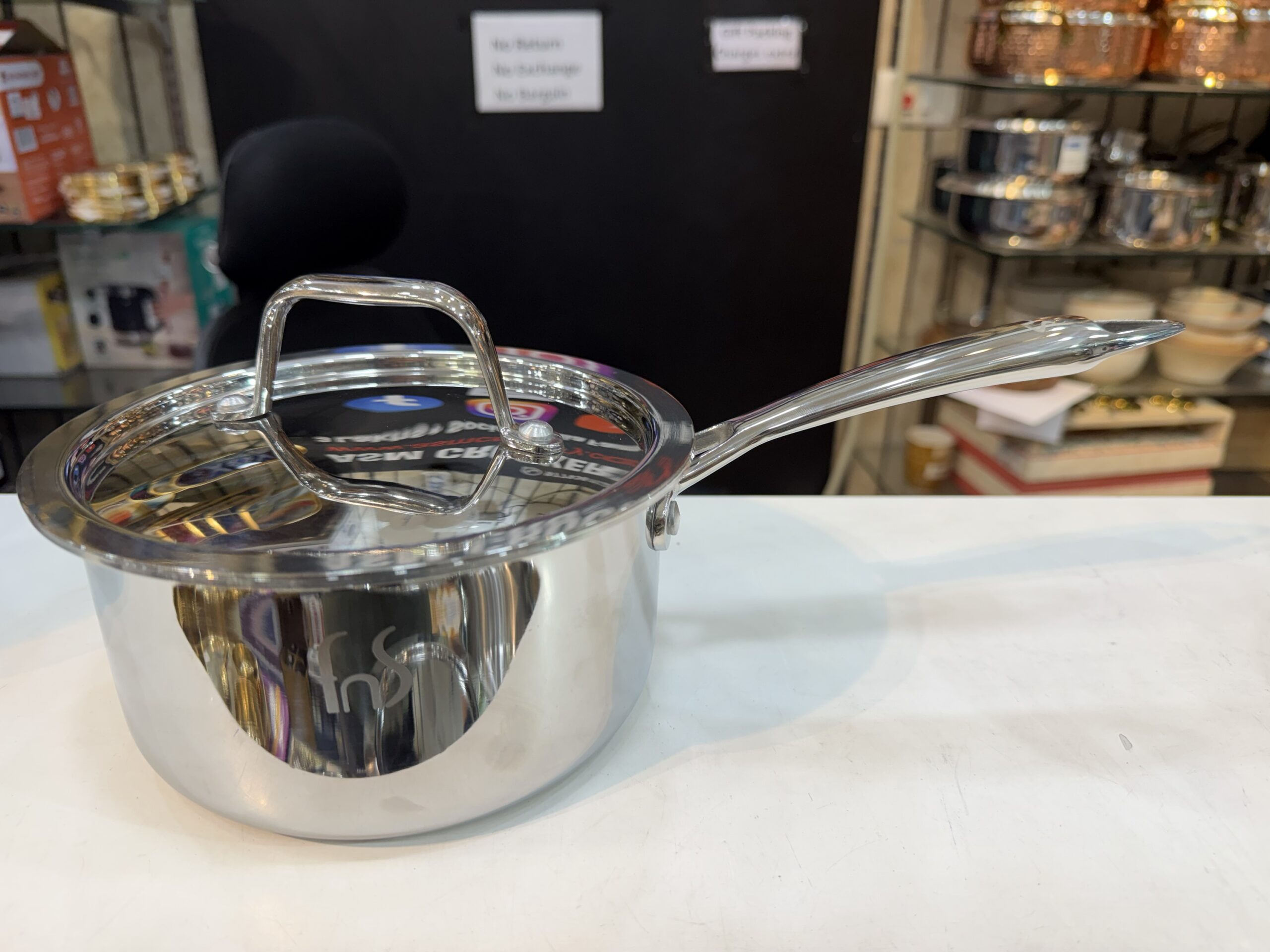 FNS Stainless Steel Triply Saucepan with stay cool handle, 10 year warrranty