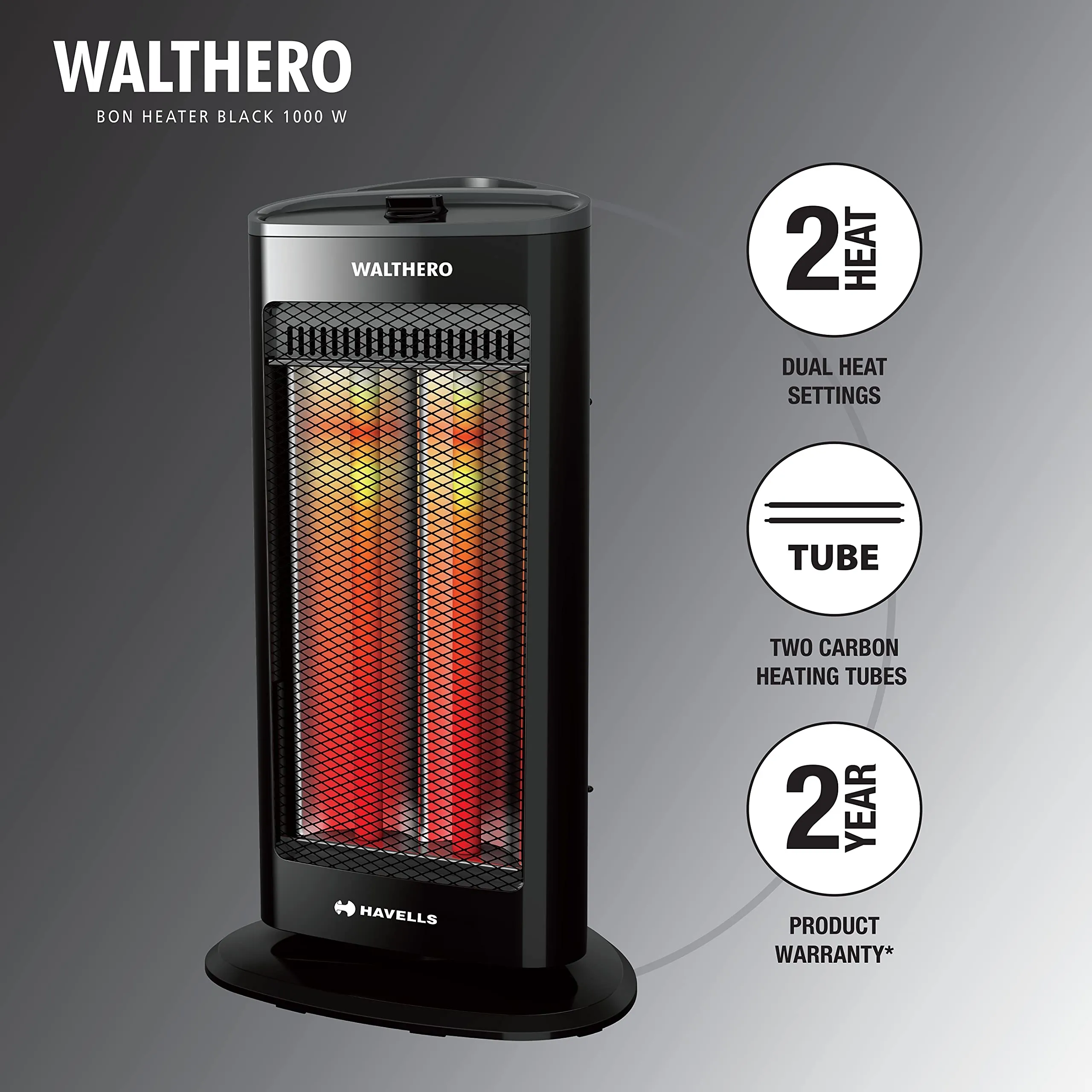 Havells Walthero Carbon Heater Black 1000 watt, 2...
