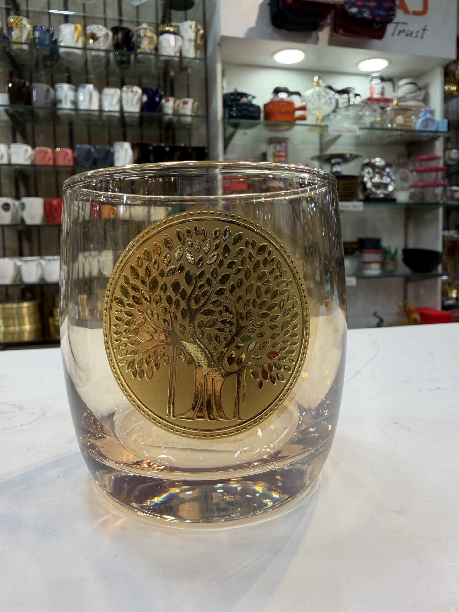 Hi luxe Turkey Collection Whisky glass, set of 6, Colour Black, Gold Tree