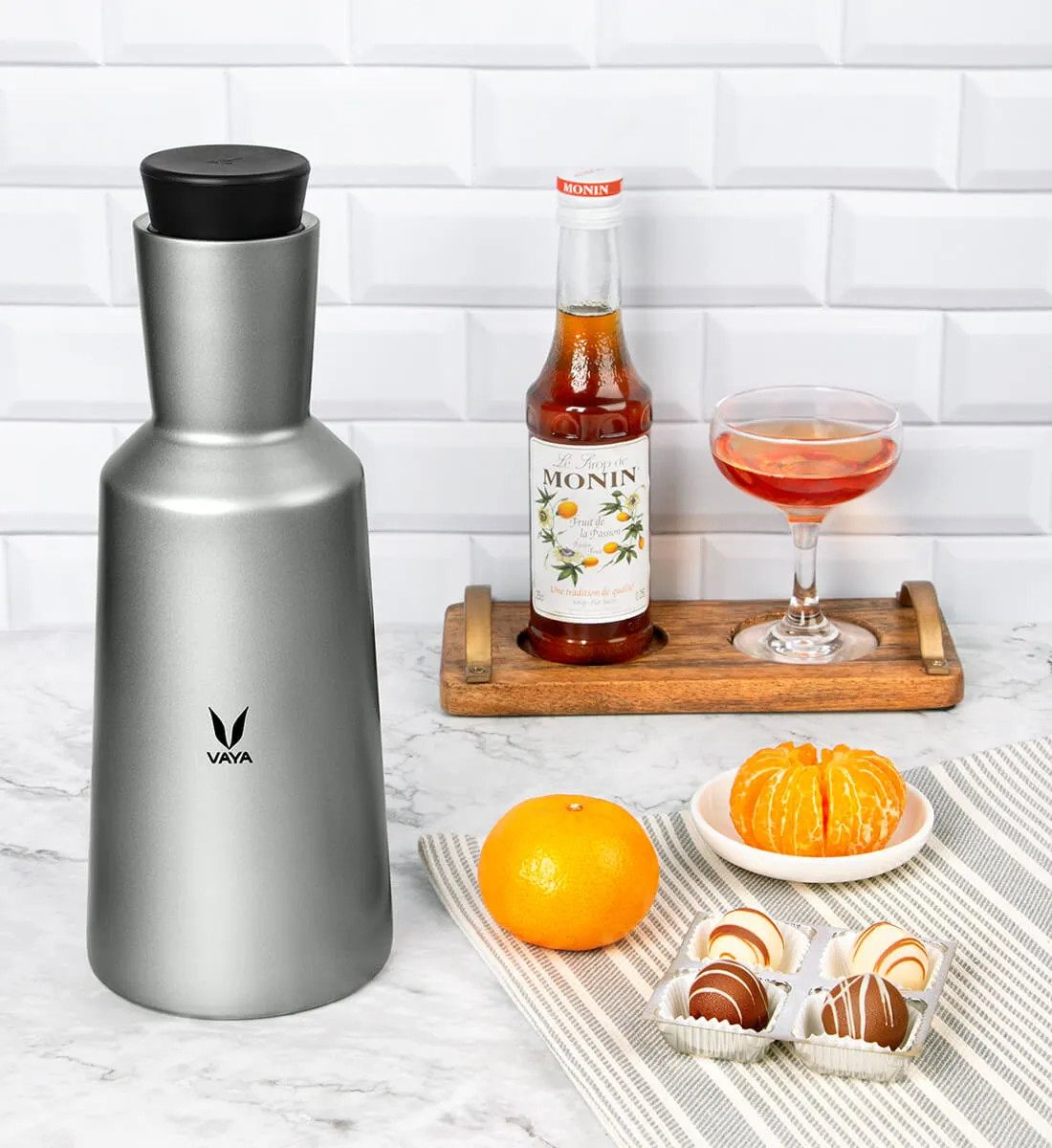 VAYA DRYNK Carafe Thermosteel Pitcher for Serving, Keeps Tea Hot/Cold for 48 Hours, Insulated Stainless Steel Jug with Flow-Control Lid, 1200 ml, Silver