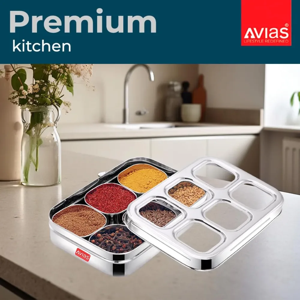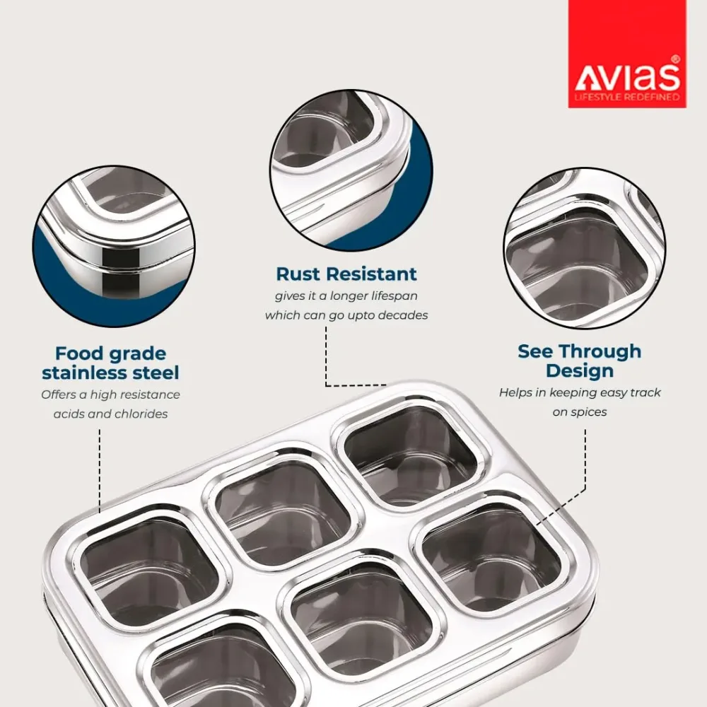 PRIME STEEL – Avias 6 Square spice box is constructed using BPA-free food-grade stainless steel from sail/Jindal steel unlike reprocessed steel used by many cheaper brands.