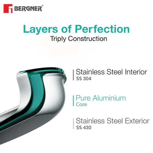 Faster, Even Heat Distribution : Triply construction ensures quick and even heat distribution, preventing hot spots and ensuring your food is cooked evenly every time
