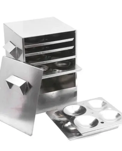 This idly maker with 4 Plates. Each plate with 4 idly Slot. Product is made in a manner where any plate can be easily removed.