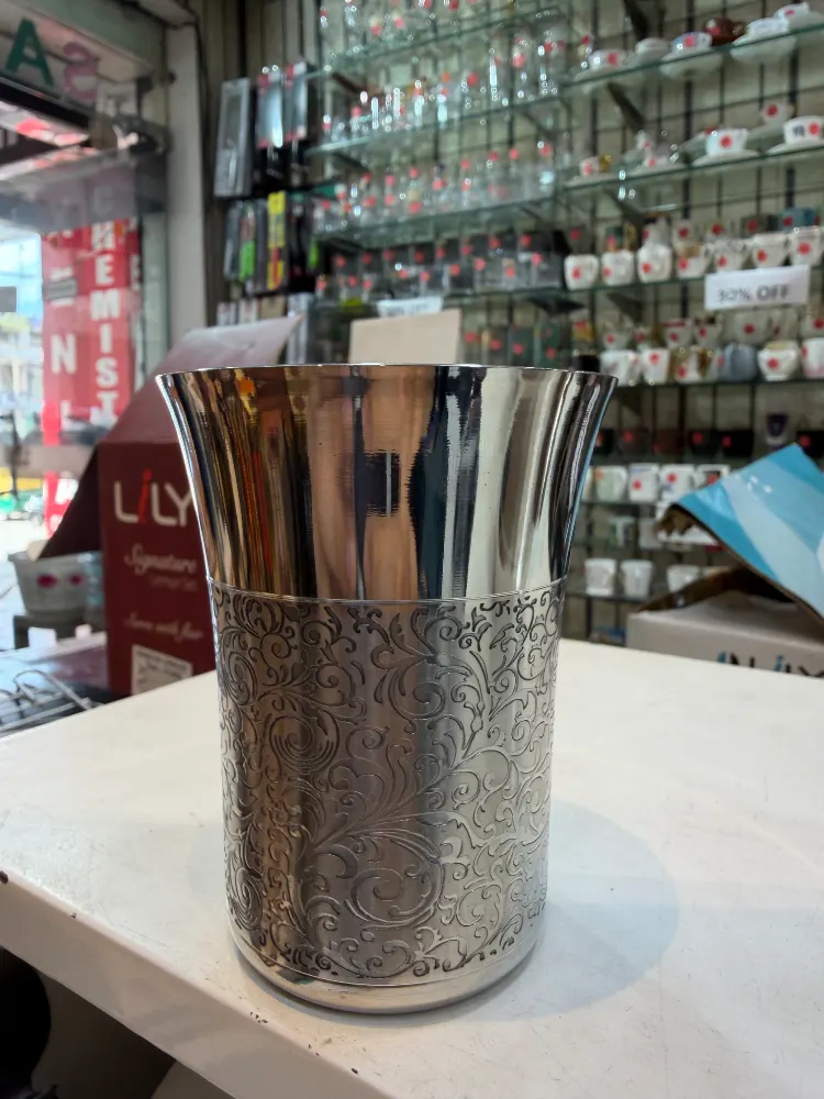 Lily Stainless Steel Lemon set with Etching design, 6 glasses plus 1 jug