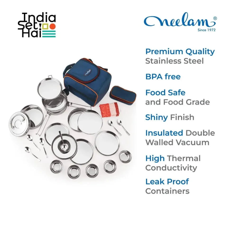 Neelam Travelling tiffin set stainless set 25 pieces tiffin set cum picnic set Large size