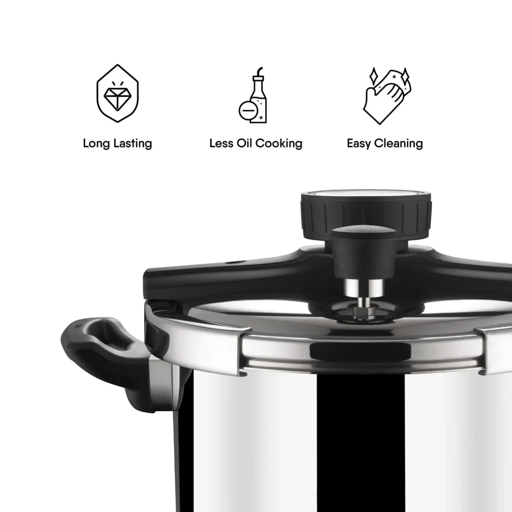 The Versatil Cooker is designed to be a product that is the future of pressure cooking. It comes with a clasp-on lid that is easy to operate and a breeze to cook with. Made in the finest quality triply, the Versatil cooker is fast, safe and an absolute beauty.