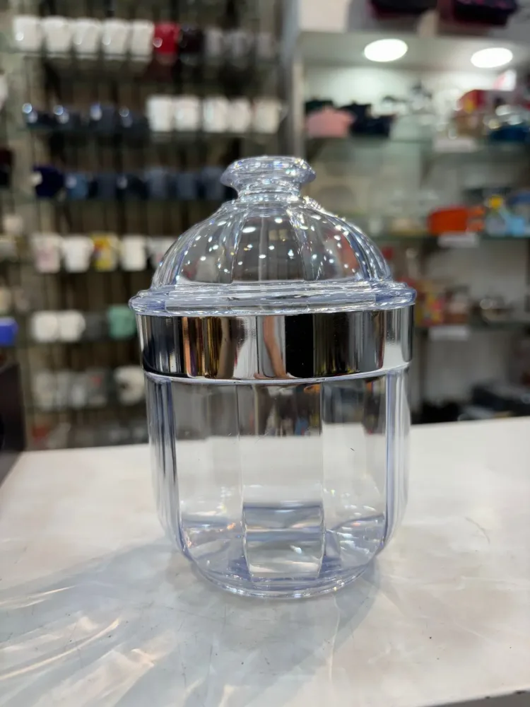 Trueware dry fruit tray with acrylic jars, wooden tray, Silver